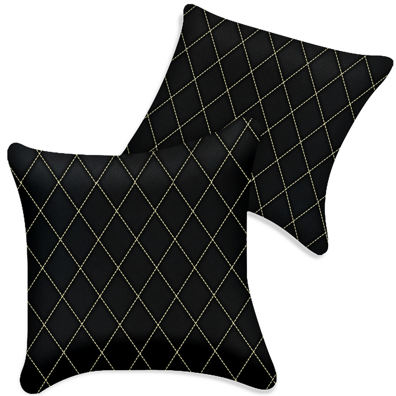 Customizable Black Leather Pillows Set of 2 for All Vehicles | Single Diamond Pattern