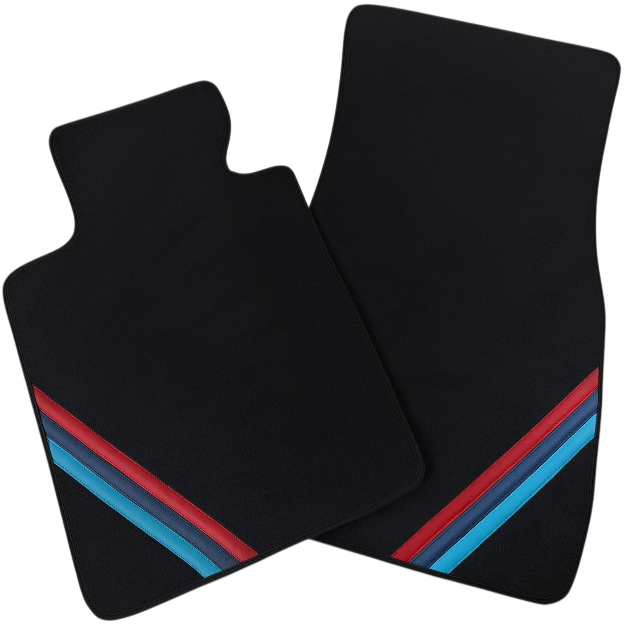 Enhance the sleek look of your BMW with these black car mats with M-Performance style leather stripes. These mats feature a unique leather stripes with BMW tricolor, adding a touch of luxury to your vehicle. Made with Tricolor M technology, these mats offer superior durability and style.