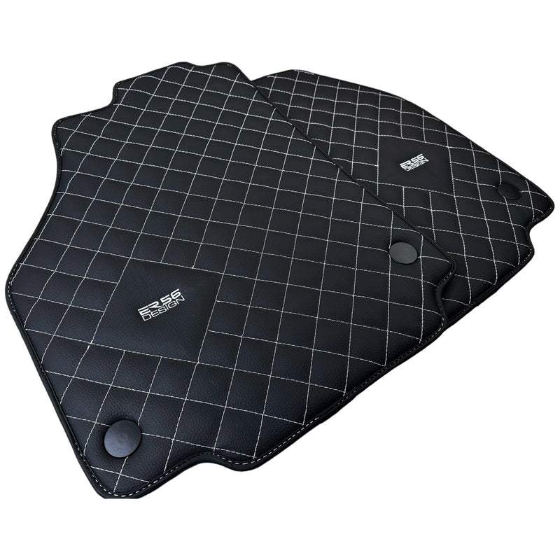 Leather Floor Mats for Ferrari 458 Italia (2009-2015) with White Sewing ER56 Design