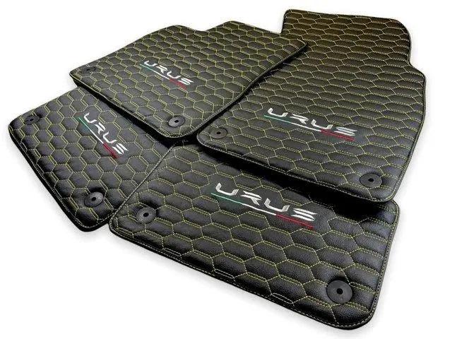 Upgrade your Lamborghini Urus interior with premium leather floor mats. Choose from multiple design patterns and custom stitching to match your style.