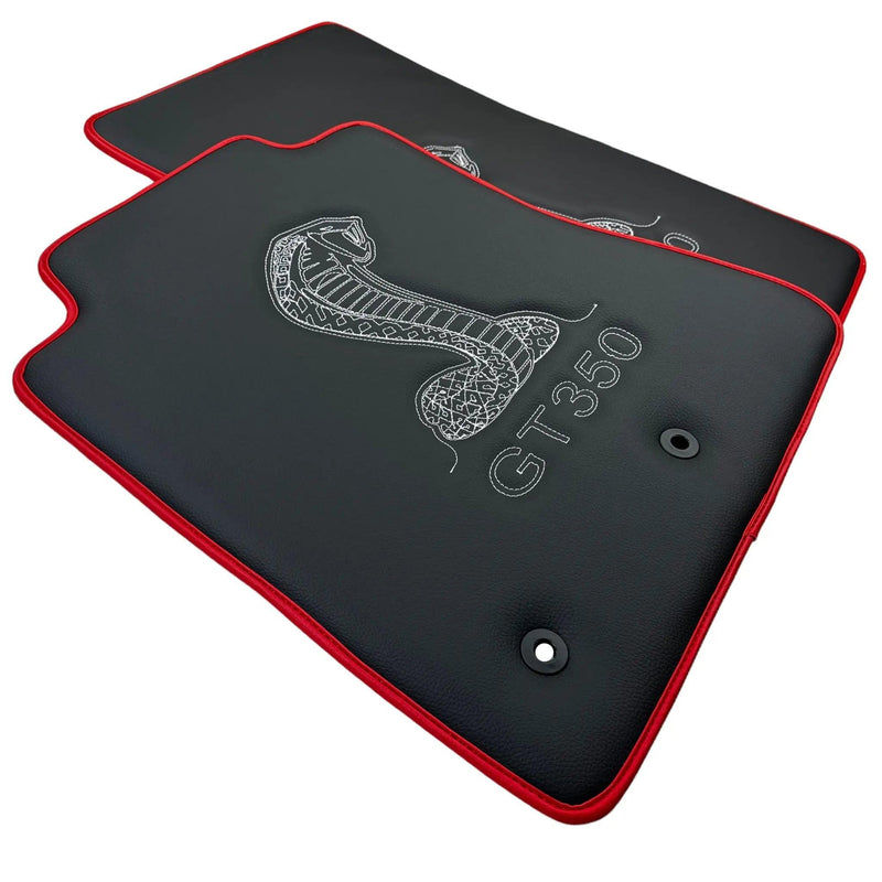 Leather Floor Mats with Red Trim for Ford Mustang GT350 Shelby (2015-2021) with Cobra Sewing