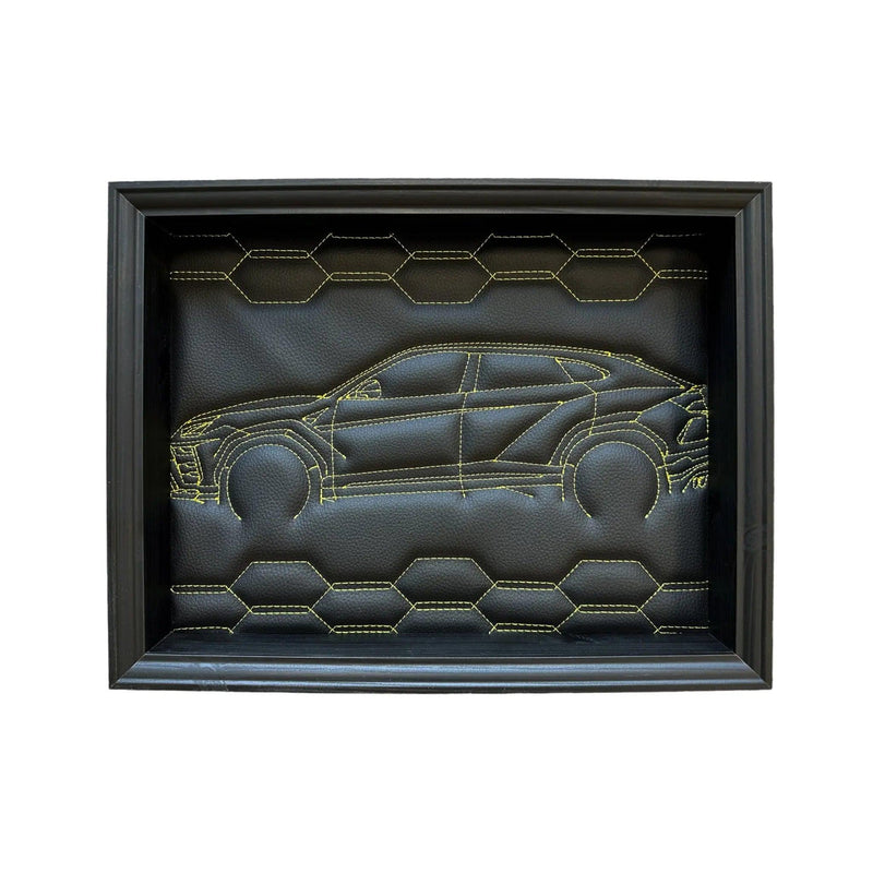 Black Leather Lamborghini Urus Inspired Wall Art: Embroidered Yellow Stitch