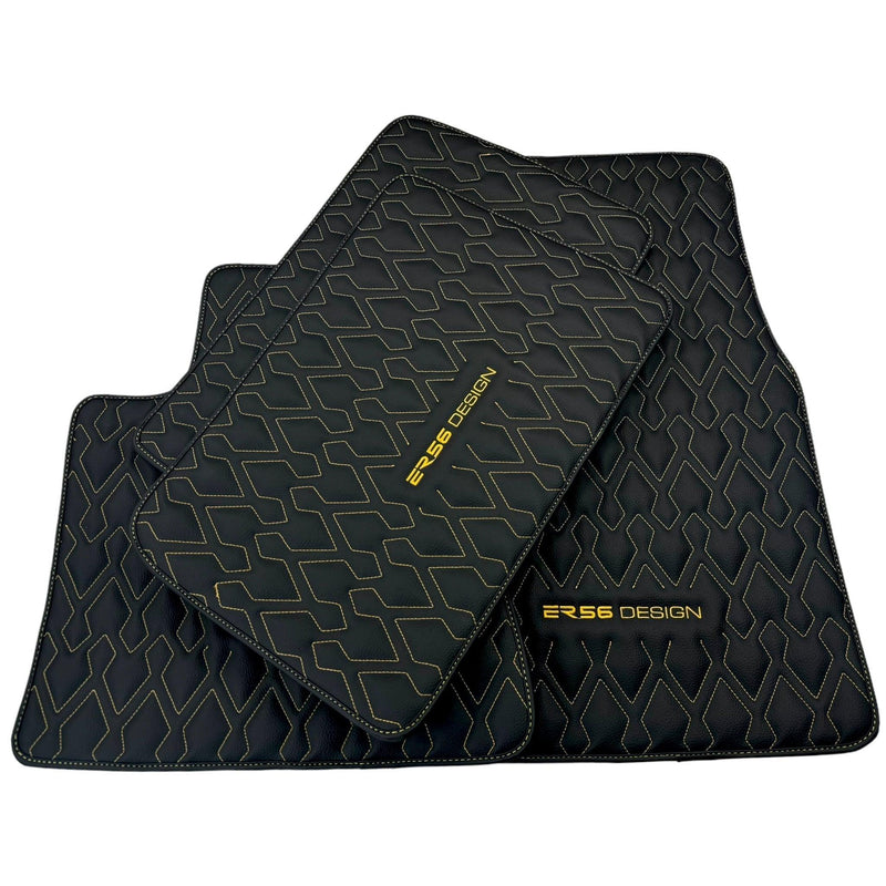 Black Leather Floor Mats for Rolls-Royce Phantom Drophead Coupe (2007-2016) ER56 Design