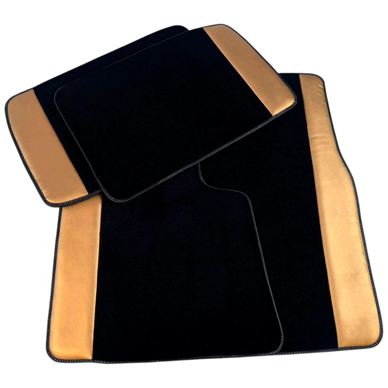 Black Floor Mats for Rolls Royce Phantom Sedan (2003-2016) with Golden Leather