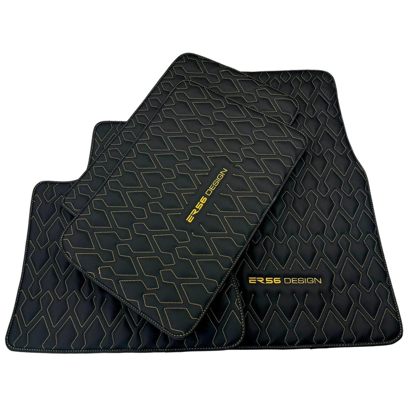 Black Leather Floor Mats for Rolls-Royce Phantom Sedan (2003-2016) ER56 Design