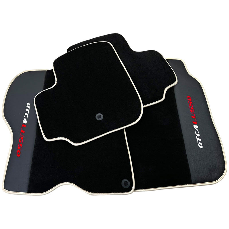 Black Floor Mats For Ferrari GTC4 Lusso (2016-2023) with Leather | Beige Trim