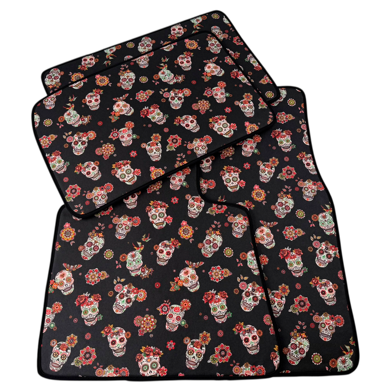Black Floral Skull Design Car Floor Mats for Rolls-Royce Cullinan (2018-2025)