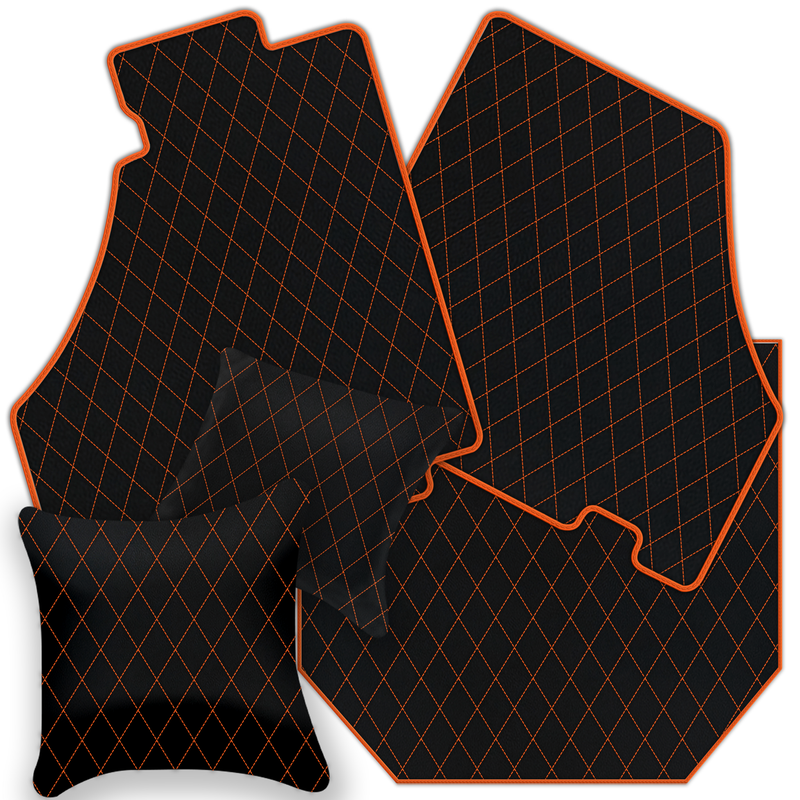 Black Leather Floor Mats for Ferrari 360 (1999-2005) with Single Diamond Pattern | Full Set Option